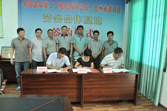 本站訊:2013年8月29日,“中國建筑第二工程局有限公司、貴州省道真仡佬族苗族自治縣、貴州鯨黔勞務(wù)有限公司,勞務(wù)合作基地簽約儀式”圓滿完成。 “中國建筑第二工程局有限公司,貴州省道真縣勞務(wù)合作基地簽約儀式”,即“中國建筑第二工程局,貴州鯨黔勞務(wù)有限公司,貴州省道真縣就業(yè)局三方協(xié)議”在道真縣人事局順利簽約成功
